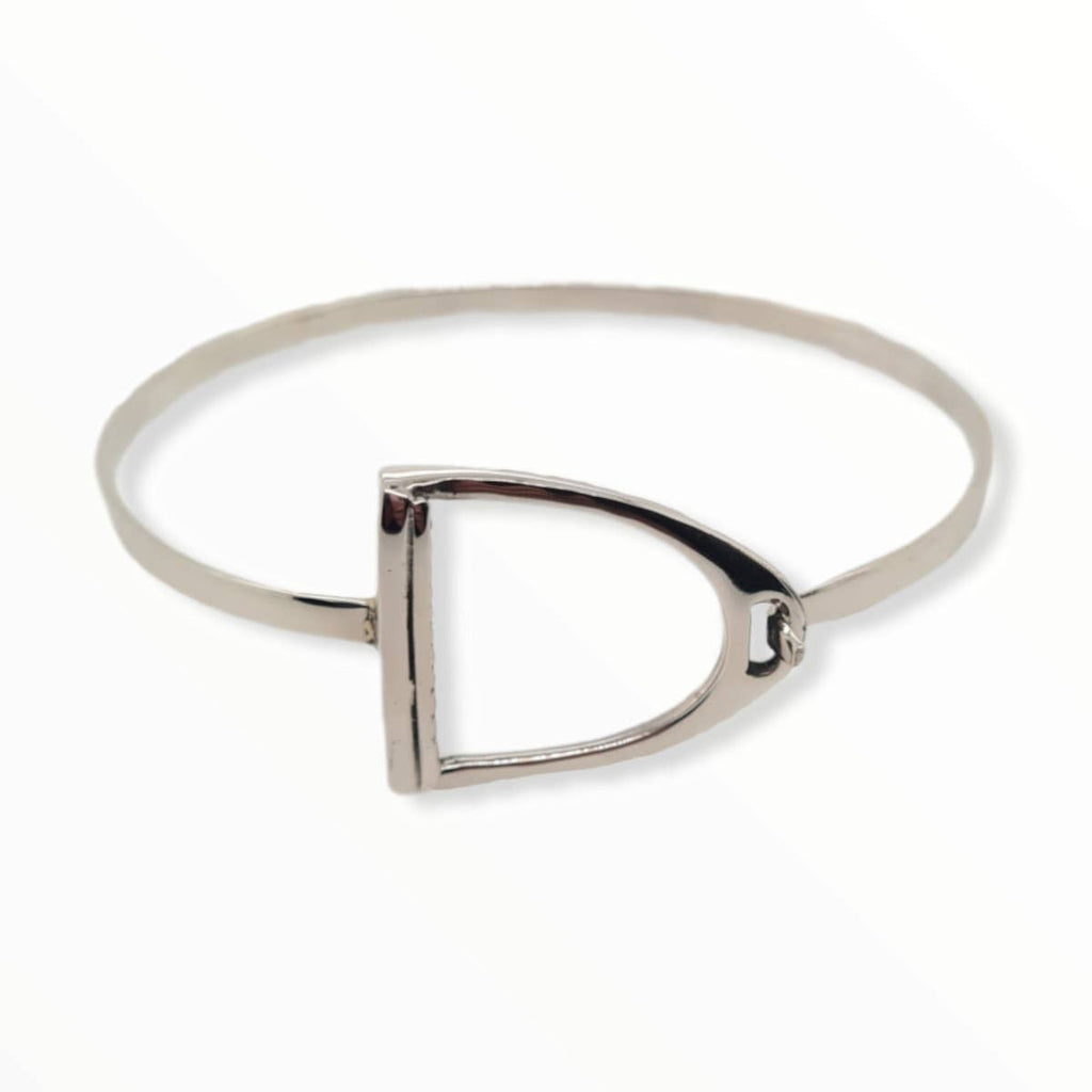 The Mountain Creek Jewellery Leg Up Bangle features a sleek silver stirrup design, symbolising support and equestrian spirit. Expertly crafted from high-quality silver, this bangle offers both durability and refined style. Its minimalist yet distinctive form makes it a sophisticated accessory for those who appreciate subtle horse-inspired jewellery with lasting elegance.