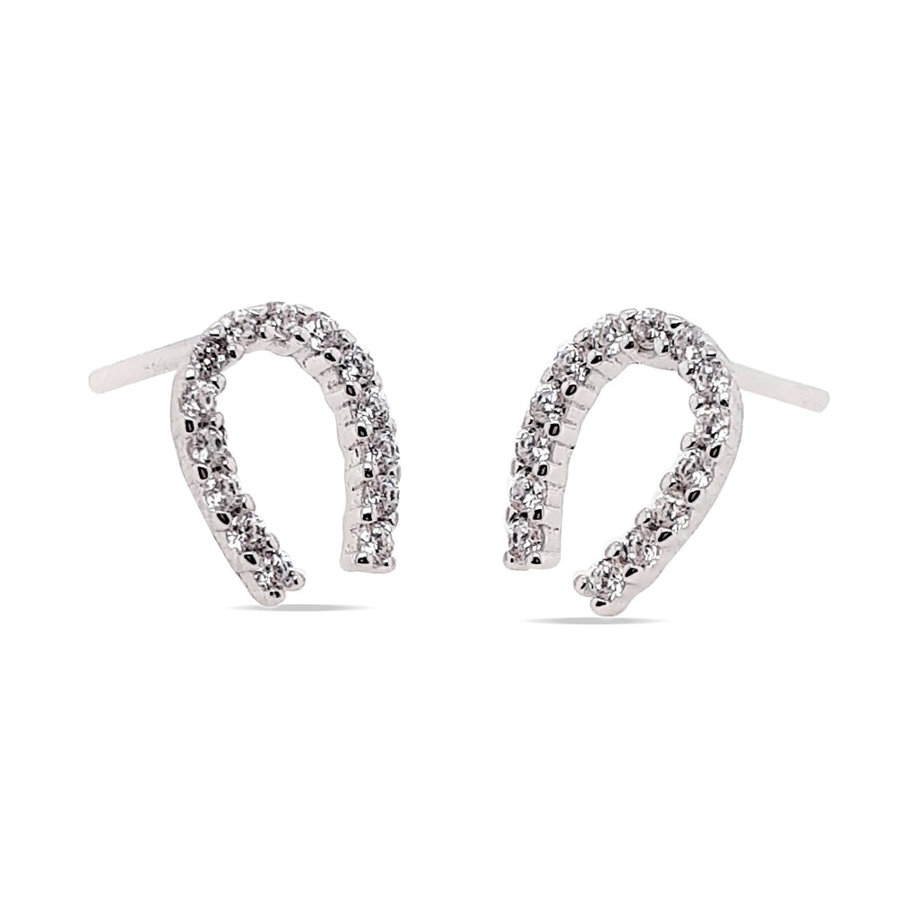 The Mountain Creek Jewellery Sterling Silver Horseshoe Earrings feature a polished design accented with sparkling cubic zirconia stones. Crafted from durable, corrosion-resistant Sterling Silver, these earrings combine lasting wear with timeless elegance. The horseshoe shape symbolizes good luck, making them a sophisticated accessory that complements both casual and formal attire, ideal for those who appreciate refined equestrian-inspired jewellery.