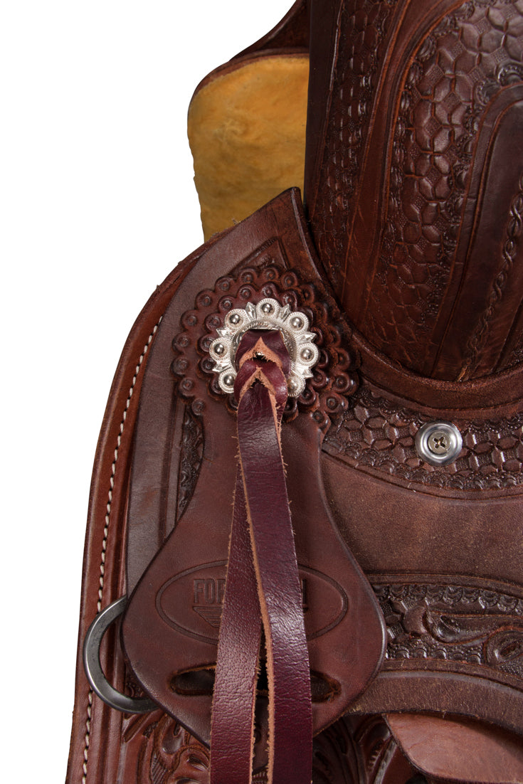- Unique, detailed floral designs add classic Western style and individuality to every saddle.