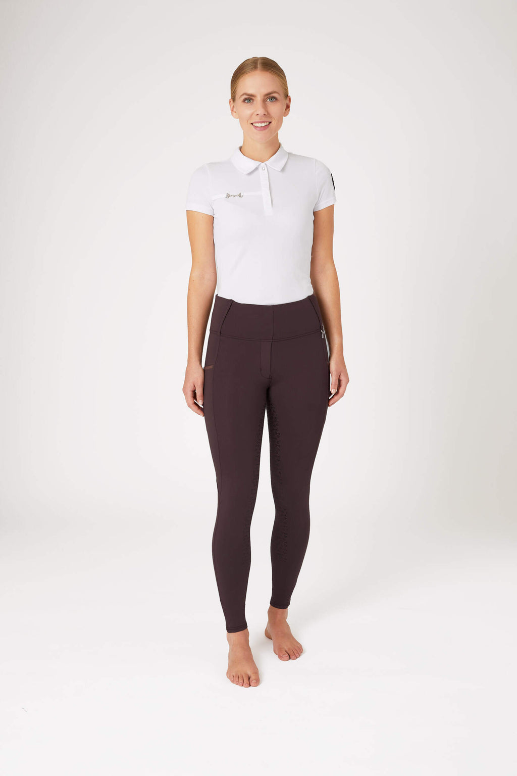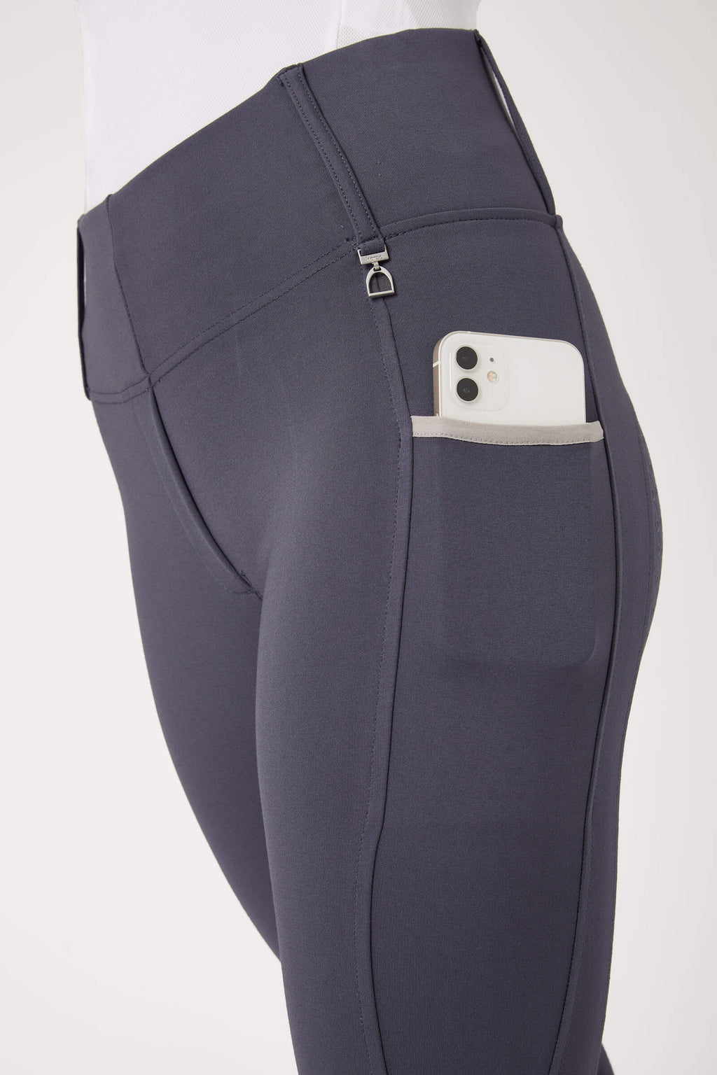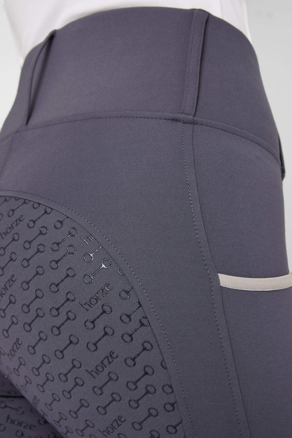 Everything you need in one pair of tights: Function, great features and style. The Horze Lucinda Silicone Full Seat Tights are super easy to put on. Stretchable material makes them comfortable and perfect for everyday training. The full silicone grip ensures that you stay safely in the saddle. Two big pockets at the thighs are perfect for your phone, keys and treats. The supporting high waistband is comfortable and soft, and additional belt loops make these tights super practical. Features: High waist Two deep pockets Soft comfortable fabric Supporting waistband with elastic at the back Silicone full seat Belt loops Horze logo charm on one belt loop Technical description: 68% rayon, 27% polyamide, 5% elastane. Washing instructions: Wash inside out with similar colours at 40 degrees. Don't use fabric softener. Don't tumble dry or iron.