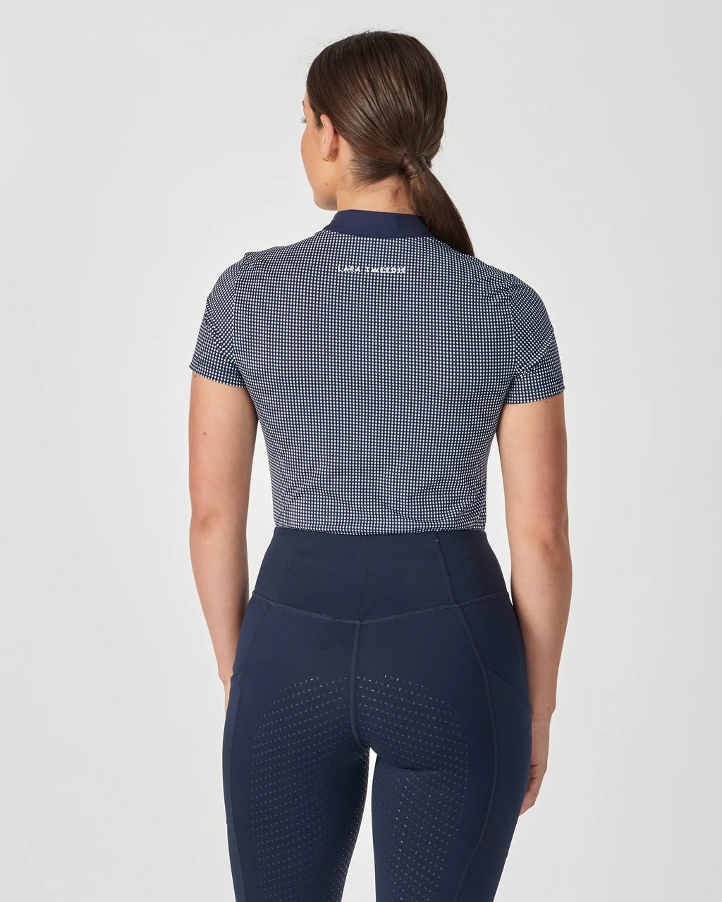 Details: White & Navy LT logo badge, Lara Tweedie White logo on back neck.