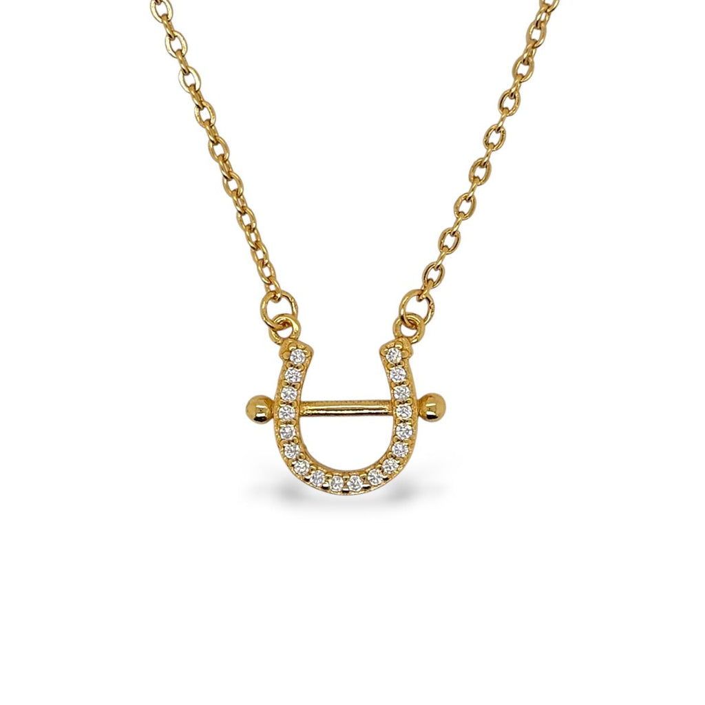 Mountain Creek Jewellery Stirling Silver Necklace with Yellow Gold Plated Cubic Zircona Horseshoe