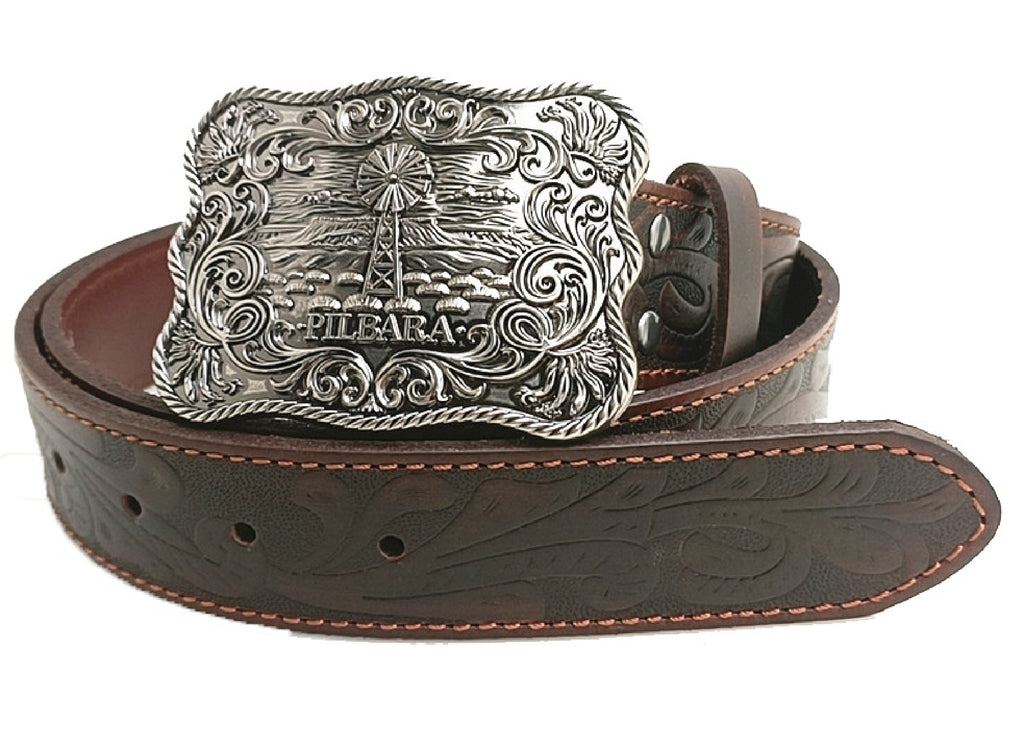 Genuine Leather Belt3 Rivet System for Buckle ReplacementClassic Embossed PatternChunky ThreadColour: Dark BrownSize: 82 - 117