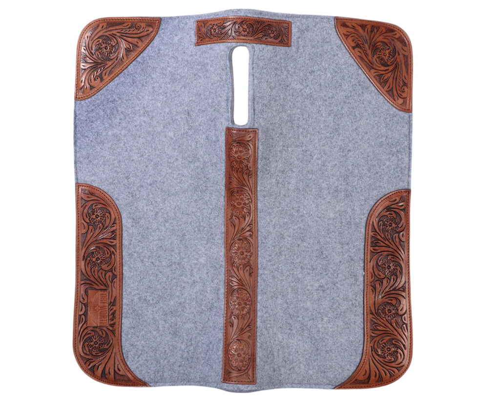 Upgrade your ride with the Fort Worth Tooled Floral Felt Saddle Pad, designed for Aussie riders who value comfort and style. This 32" x 30" pad features premium 20mm felt for superior shock absorption and a secure, slip-free fit. The elegant wear leathers are beautifully tooled with a floral pattern, adding a touch of Western flair while protecting high-wear areas. Perfect for everyday riding or competition, this pad delivers durability and performance in all conditions.