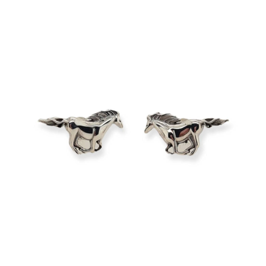 The Mountain Creek Jewellery Sterling Silver Running Horses Studs showcase exquisite craftsmanship in sterling silver, capturing the dynamic motion of galloping horses. These finely detailed studs offer a subtle yet striking accessory for equestrian enthusiasts seeking elegant everyday jewellery. Durable and comfortable, they provide a sophisticated way to express your passion for horses with timeless style.