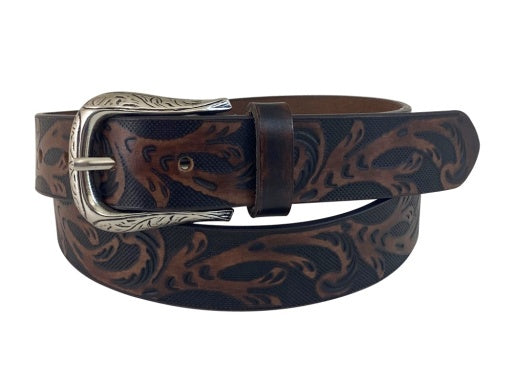 WOMEN'S GENUINE BUFFALO LEATHER BROWN BELT - TEXTURED FLORAL